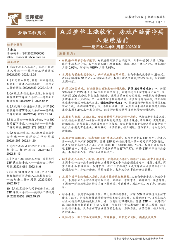 【德邦证券】【20230101】德邦金工择时周报:A股整体上涨收官,房地产融资净买入继续居前-27页