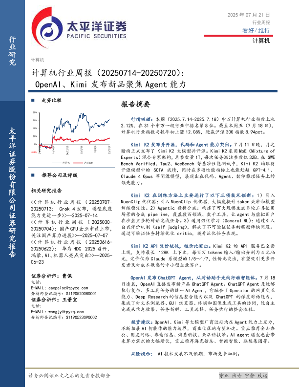 【太平洋证券】【20250721】计算机行业周报:OpenAI、Kimi发布新品聚焦Agent能力-10页