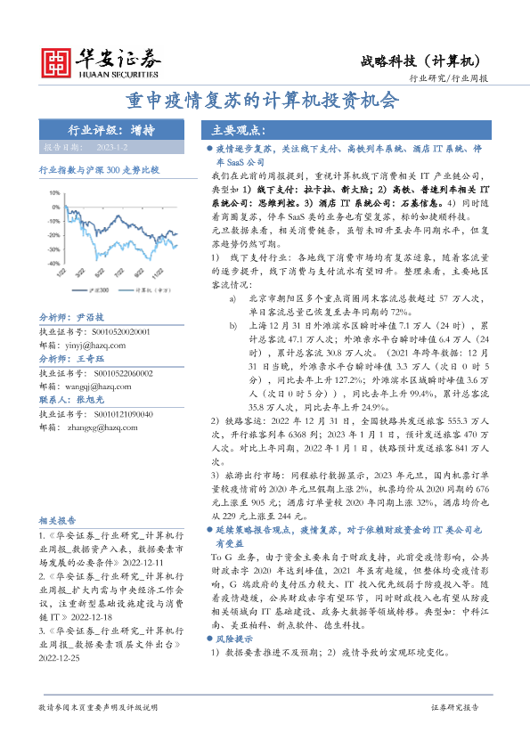【华安证券】【20230102】战略科技(计算机)行业周报:重申疫情复苏的计算机投资机会-16页