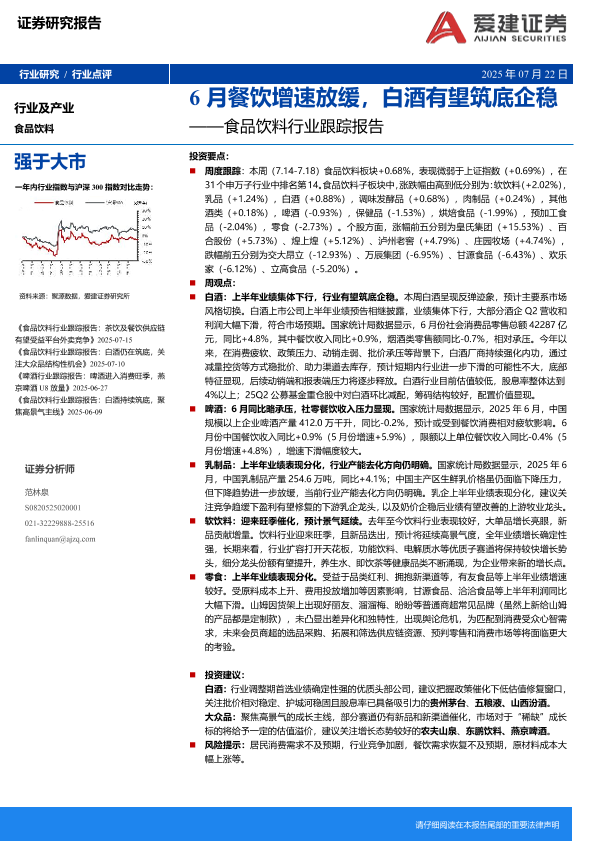 【爱建证券】【20250722】6月餐饮增速放缓,白酒有望筑底企稳-15页