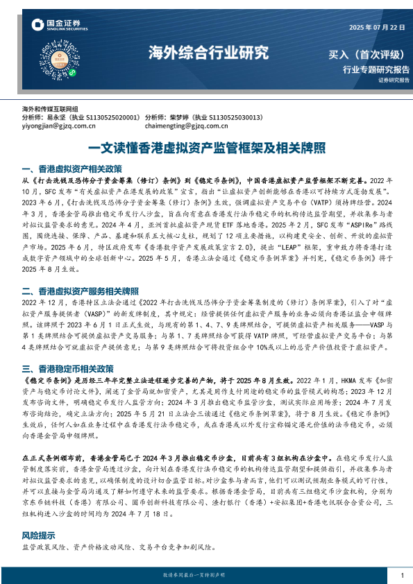 【国金证券】【20250722】一文读懂香港虚拟资产监管框架及相关牌照-15页
