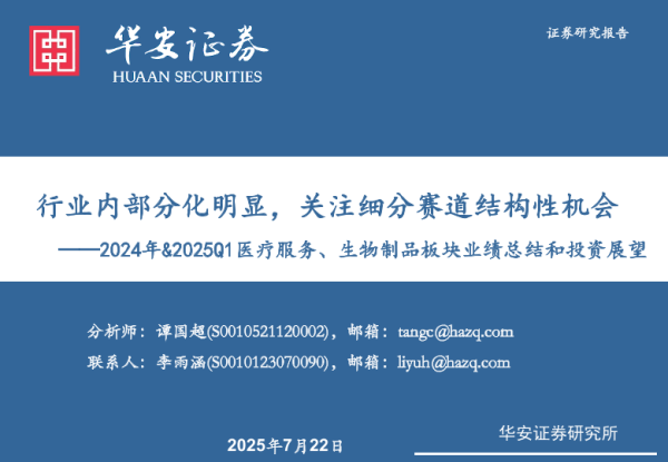【华安证券】【20250722】2024年&2025Q1医疗服务、生物制品板块业绩总结和投资展望-23页