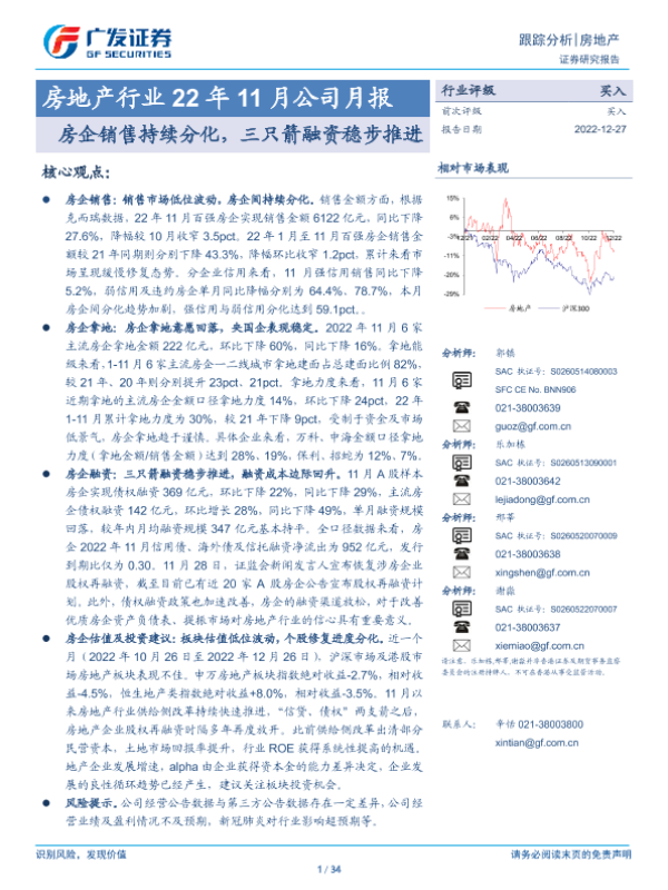 【广发证券】【20221227】房地产行业22年11月公司月报:房企销售持续分化,三只箭融资稳步推进-34页