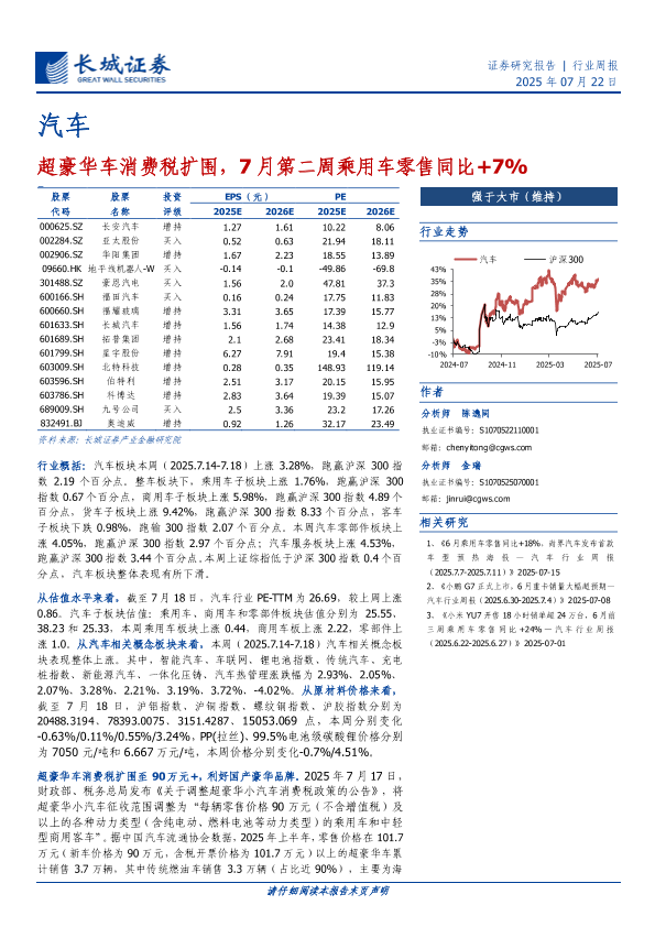 【长城证券】【20250722】超豪华车消费税扩围,7月第二周乘用车零售同比+7%-11页