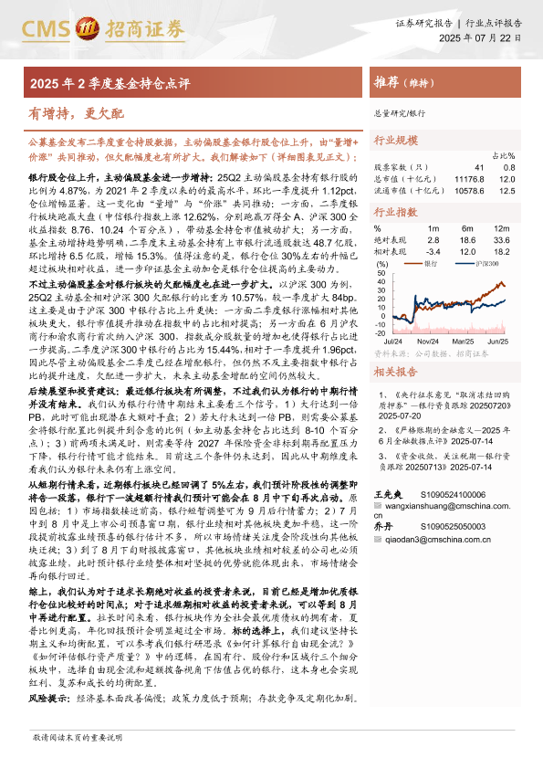 【海通证券】【20250722】银行业2025年2季度基金持仓点评:有增持,更欠配-13页