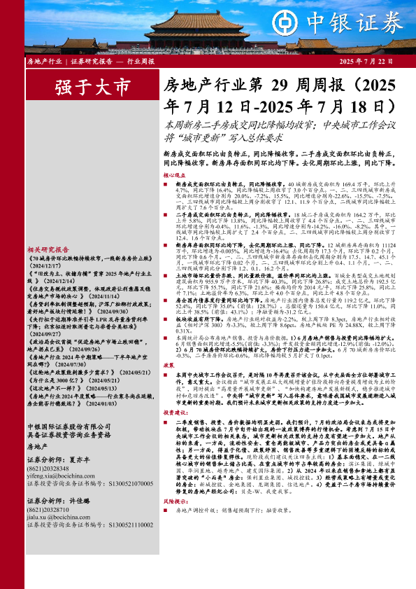 【中银证券】【20250722】房地产行业第29周周报-27页