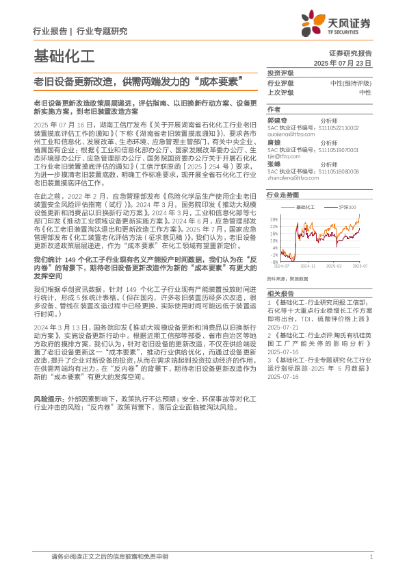 【天风证券】【20250723】基础化工行业专题研究:老旧设备更新改造,供需两端发力的“成本要素”-12页