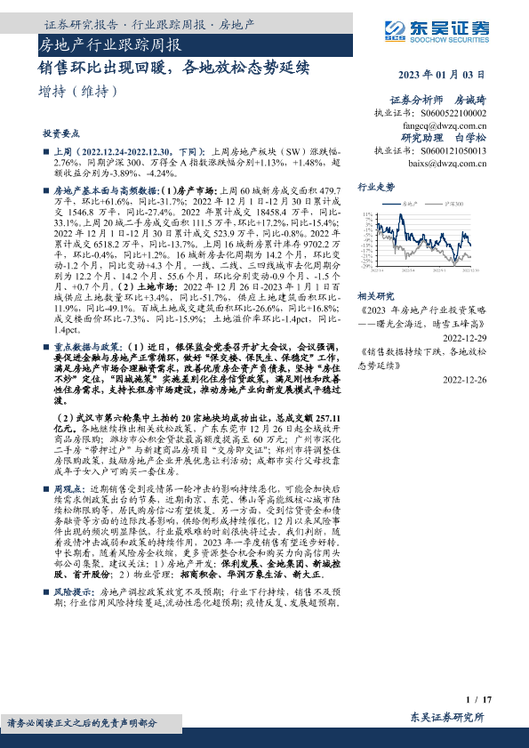 【东吴证券】【20230103】房地产行业跟踪周报:销售环比出现回暖,各地放松态势延续-17页
