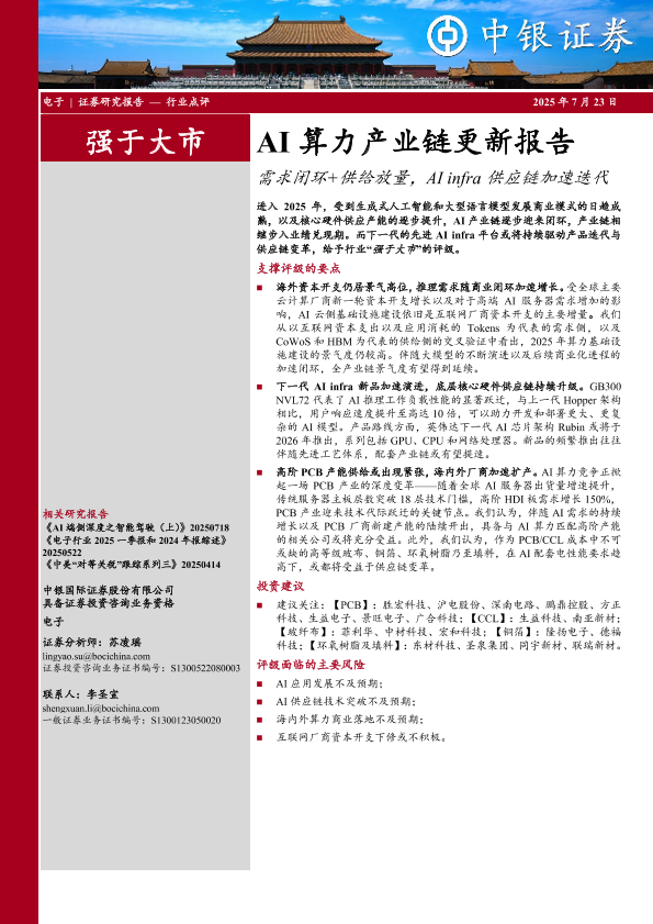 【中银证券】【20250723】AI算力产业链更新报告:需求闭环+供给放量,AIinfra供应链加速迭代-17页
