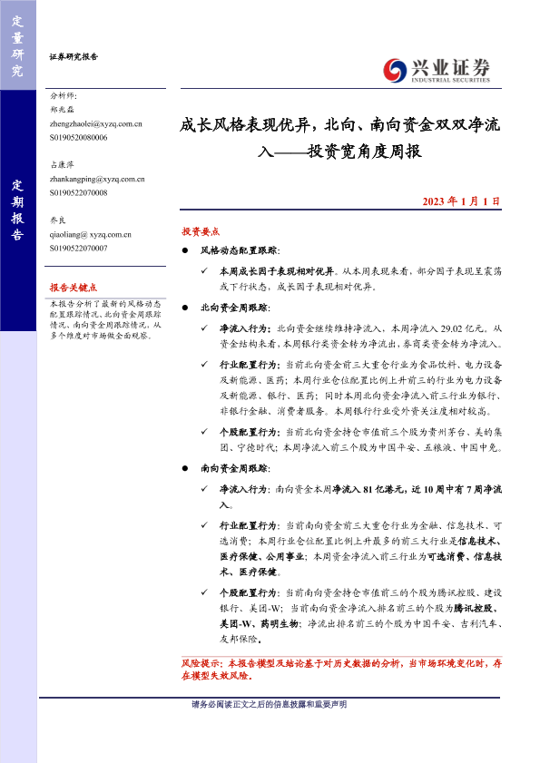 【兴业证券】【20230101】成长风格表现优异,北向、南向资金双双净流入——投资宽角度周报-15页