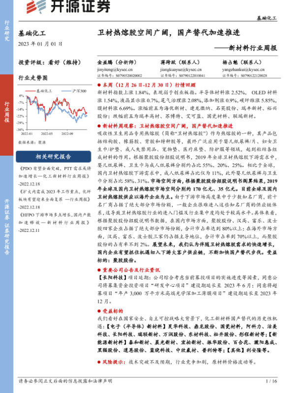 【开源证券】【20230101】新材料行业周报:卫材热熔胶空间广阔,国产替代加速推进-16页