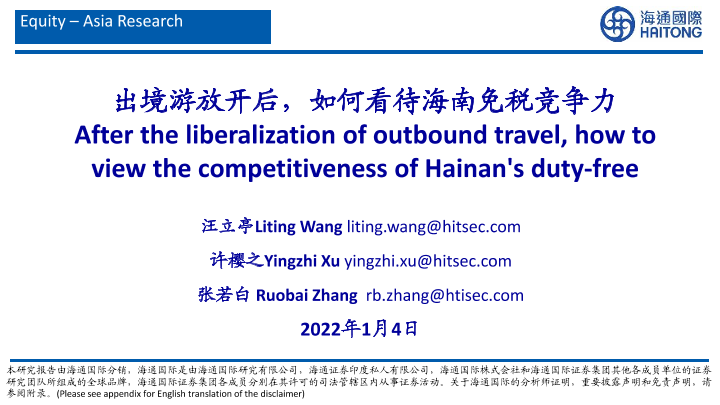 【海通国际】【20230104】出境游放开后,如何看待海南免税竞争力-37页