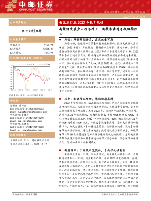 【中邮证券】【20221230】新能源行业2023年投资策略:新能源发展步入稳态增长,新技术渗透寻找结构性α-62页