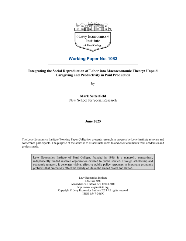 【Levy Economics Institute of Bard College】【202506】Integrating the Social Reproduction of Labor into Macroeconomic Theory Unpaid Caregiving and Productivity in Paid Production-25页