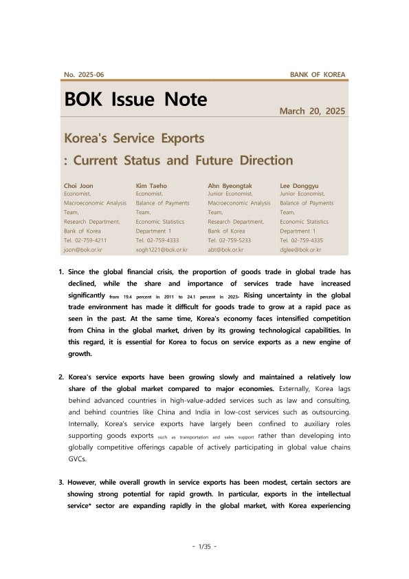 【韩国央行】【202506】韩国服务出口:现状与未来方向-34页