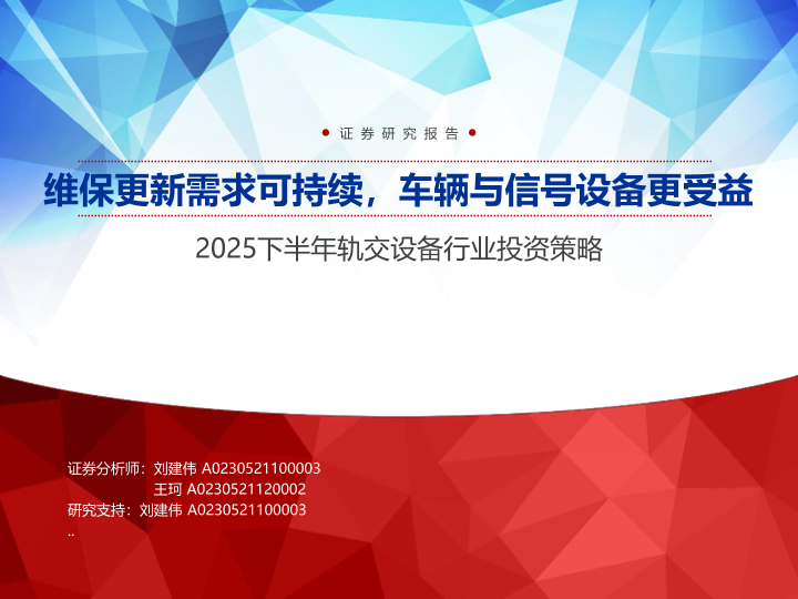 【申万宏源】【20250629】2025下半年轨交设备行业投资策略:维保更新需求可持续,车辆与信号设备更受益-27页