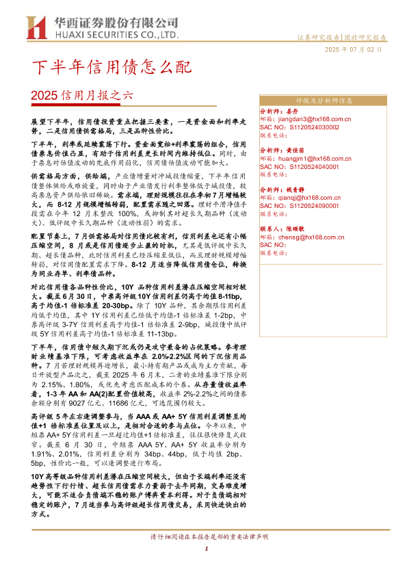 【华西证券】【20250702】2025信用月报之六:下半年信用债怎么配-29页