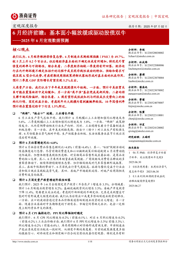 【浙商证券】【20250702】2025年6月宏观数据预测:6月经济前瞻,基本面小幅放缓或驱动股债双牛-18页