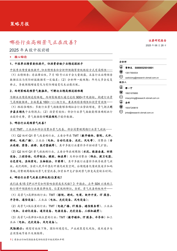 【西部证券】【20250628】2025年A股中报前瞻:哪些行业高频景气正在改善?-10页