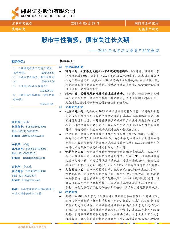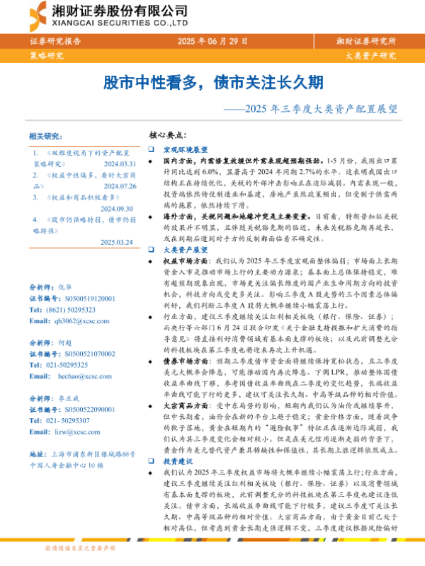 【湘财证券】【20250629】2025年三季度大类资产配置展望-28页