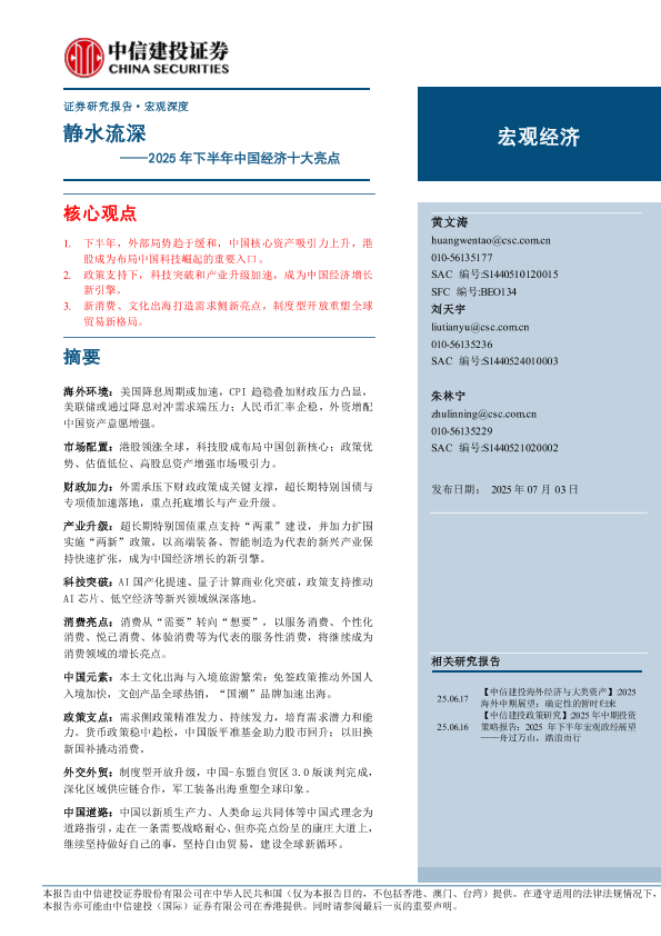 【中信建投证券】【20250703】2025年下半年中国经济十大亮点:静水流深-23页