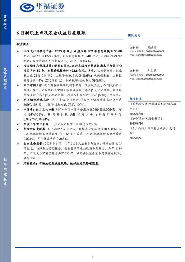 【华福证券】【202506】6月新股上市及基金收益月度跟踪-10页