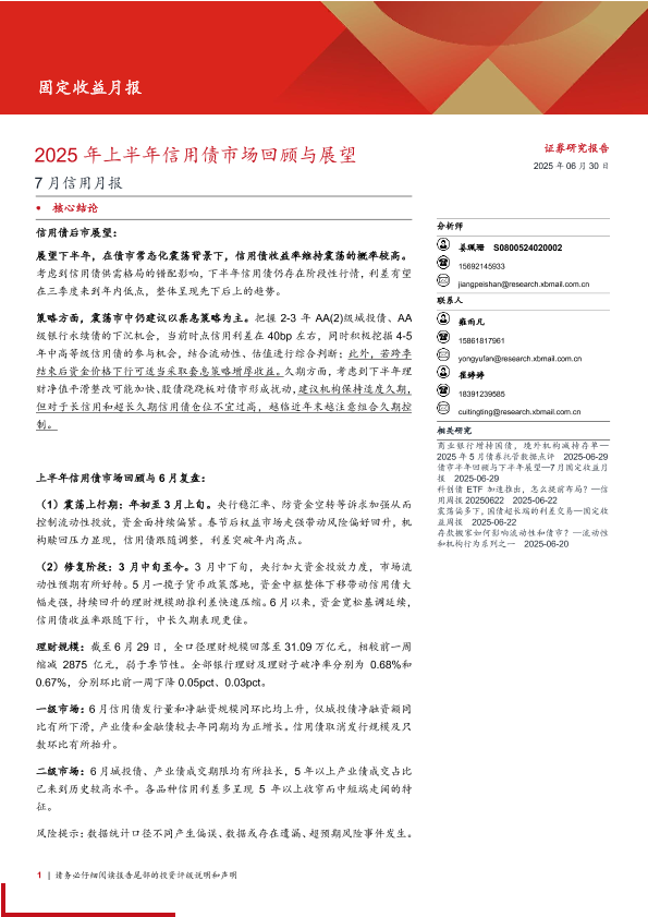 【西部证券】【20250630】7月信用月报:2025年上半年信用债市场回顾与展望-24页