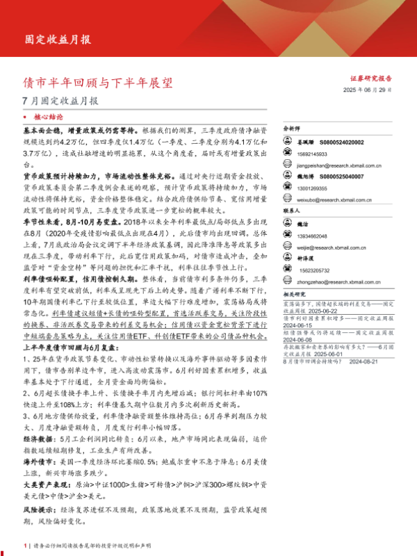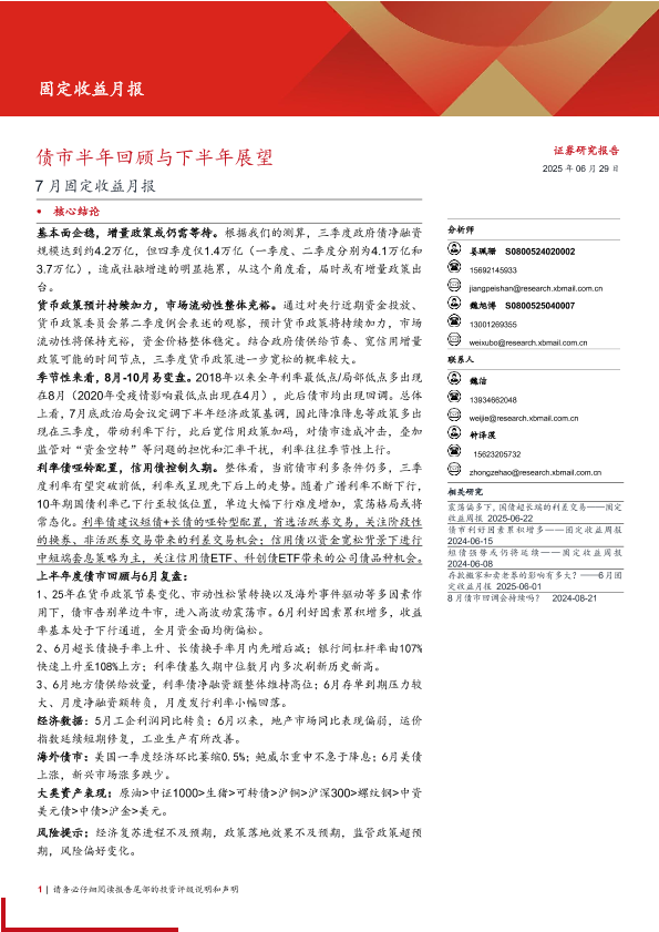 【西部证券】【20250629】7月固定收益月报:债市半年回顾与下半年展望-24页