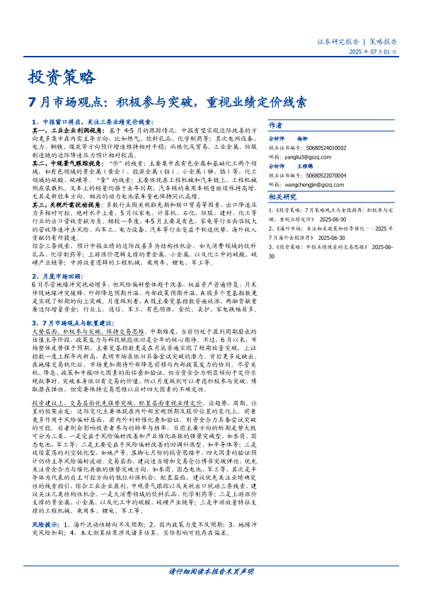 【国盛证券】【20250701】7月市场观点:积极参与突破,重视业绩定价线索-11页