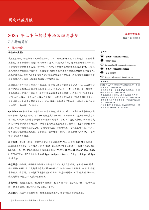 【西部证券】【20250702】7月转债月报:2025年上半年转债市场回顾与展望-18页