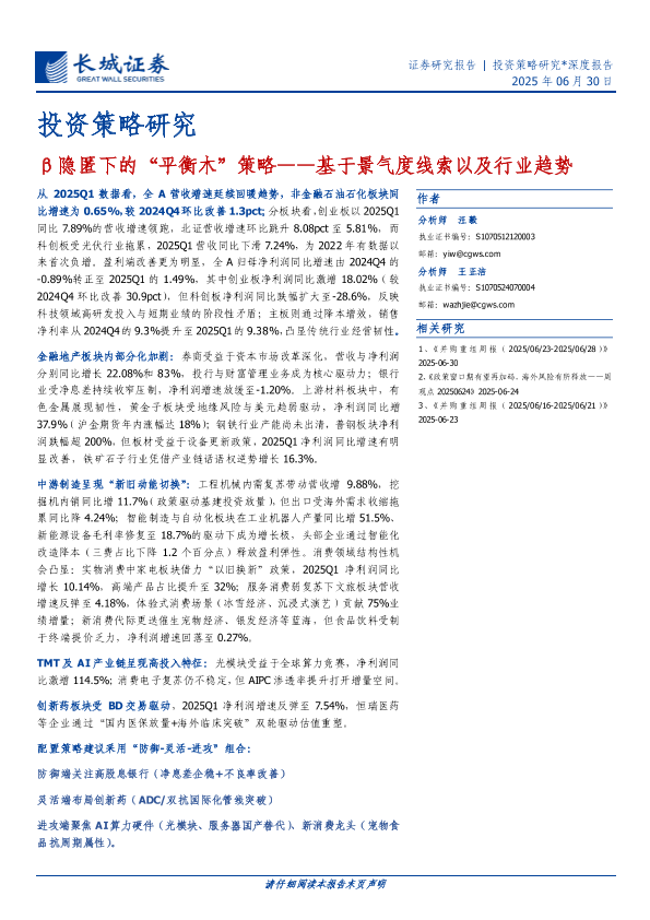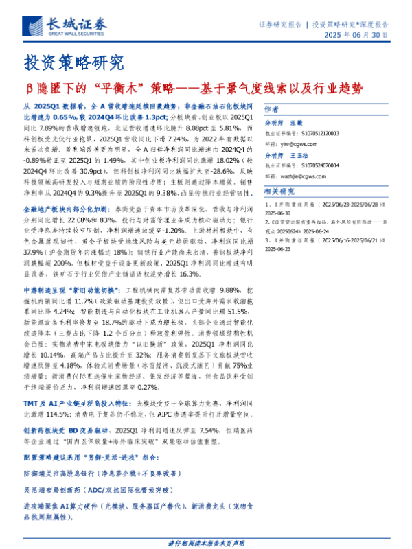 【长城证券】【20250630】β隐匿下的“平衡木”策略——基于景气度线索以及行业趋势-51页