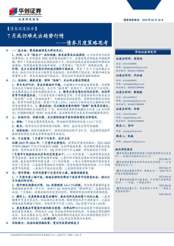 【华创证券】【20250630】债券月度策略思考:7月或仍难走出趋势行情-24页