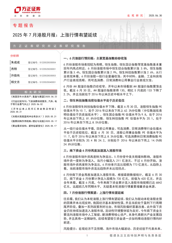 【方正证券】【20250630】2025年7月港股月报:上涨行情有望延续-12页
