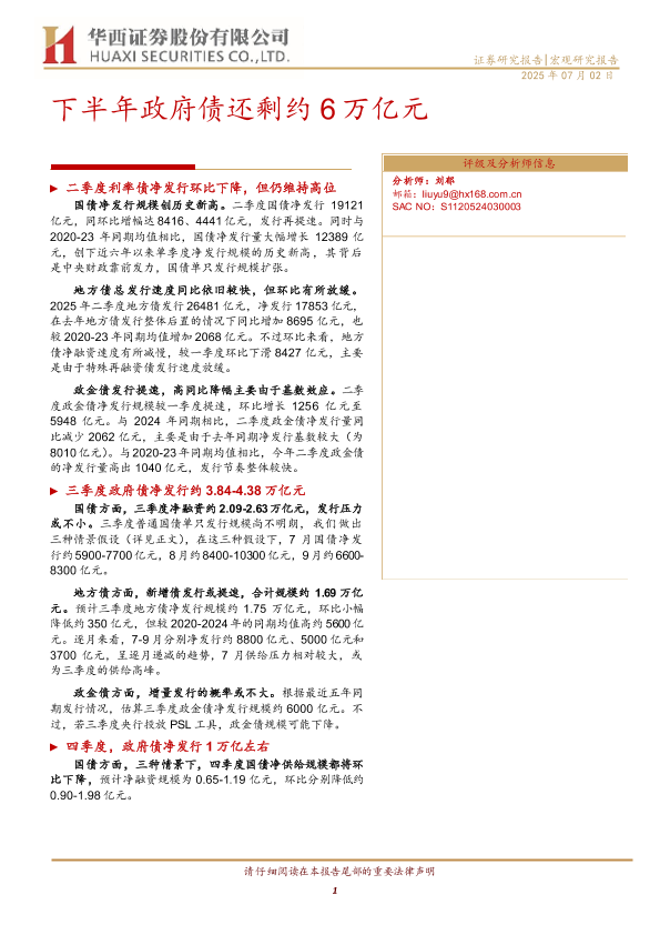 【华西证券】【20250702】下半年政府债还剩约6万亿元-17页