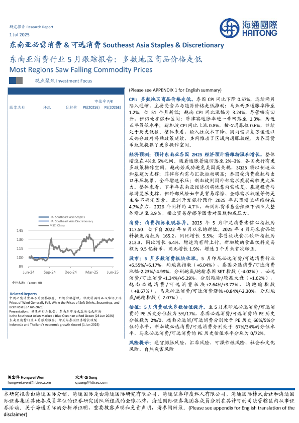 【海通国际】【20250701】东南亚消费行业5月跟踪报告:多数地区商品价格走低-29页