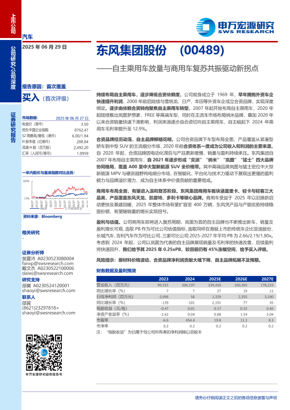 【申万宏源】【20250629】东风集团股份自主乘用车放量与商用车复苏共振驱动新拐点-35页