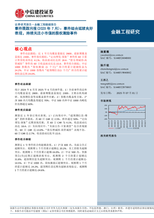 超额收益 金融工程 市场表现 事件跟踪 股权激励