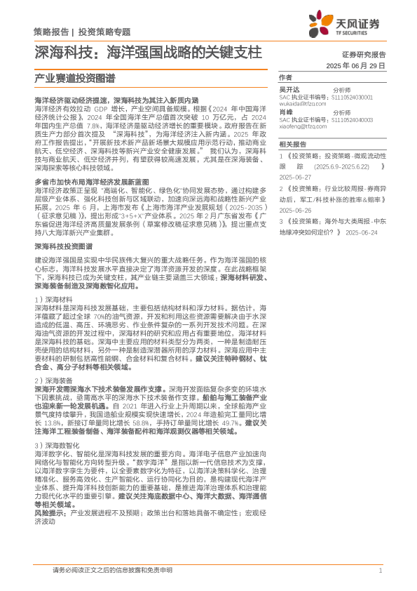 【天风证券】【20250629】产业赛道投资图谱:深海科技,海洋强国战略的关键支柱-16页