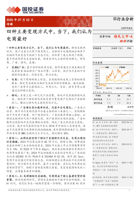 【国投证券】【20250702】传媒行业分析:四种主要变现方式中,当下,我们认为电商最好-12页
