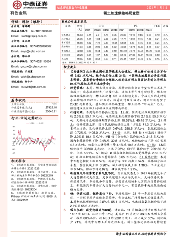 【中泰证券】【20230101】有色金属行业周报:稀土加速供给格局重塑-25页