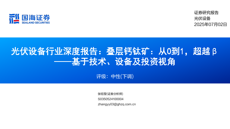 【国海证券】【20250702】光伏设备行业深度报告:叠层钙钛矿,从0到1,超越β-28页