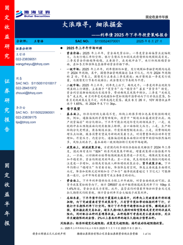 【渤海证券】【20250627】利率债2025年下半年投资策略报告:大浪难寻,细浪掘金-16页