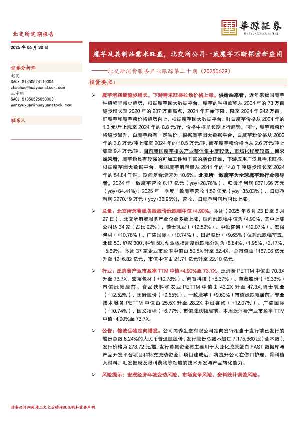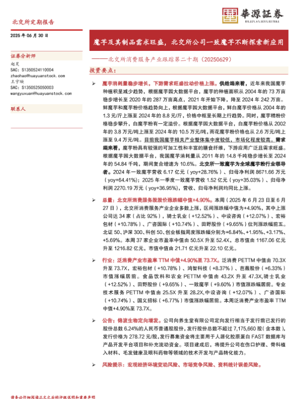 【华源证券】【20250630】北交所消费服务产业跟踪第二十期:魔芋及其制品需求旺盛,北交所公司一致魔芋不断探索新应用-17页