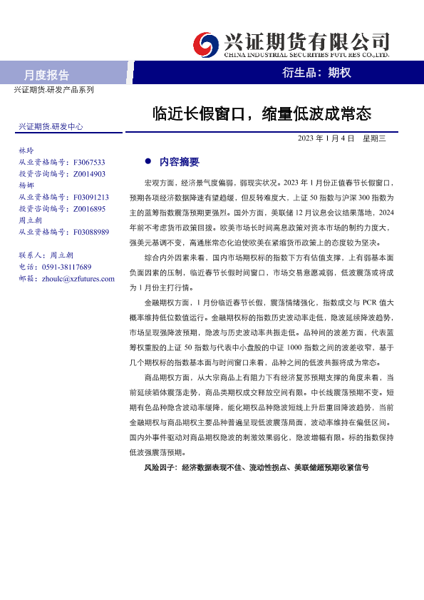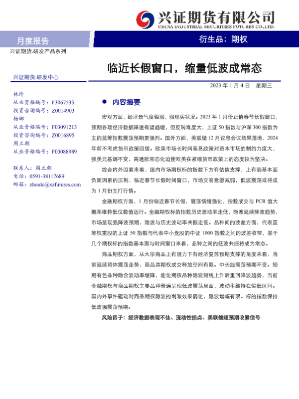 【兴证期货】【20230104】期权月度报告:临近长假窗口,缩量低波成常态-21页