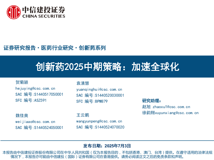 【中信建投证券】【20250703】医药行业创新药2025中期策略:加速全球化-88页
