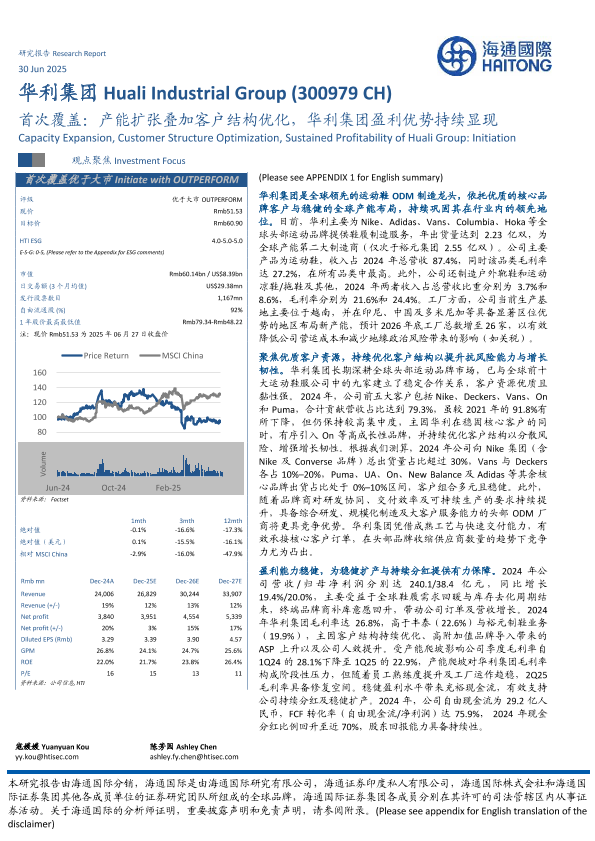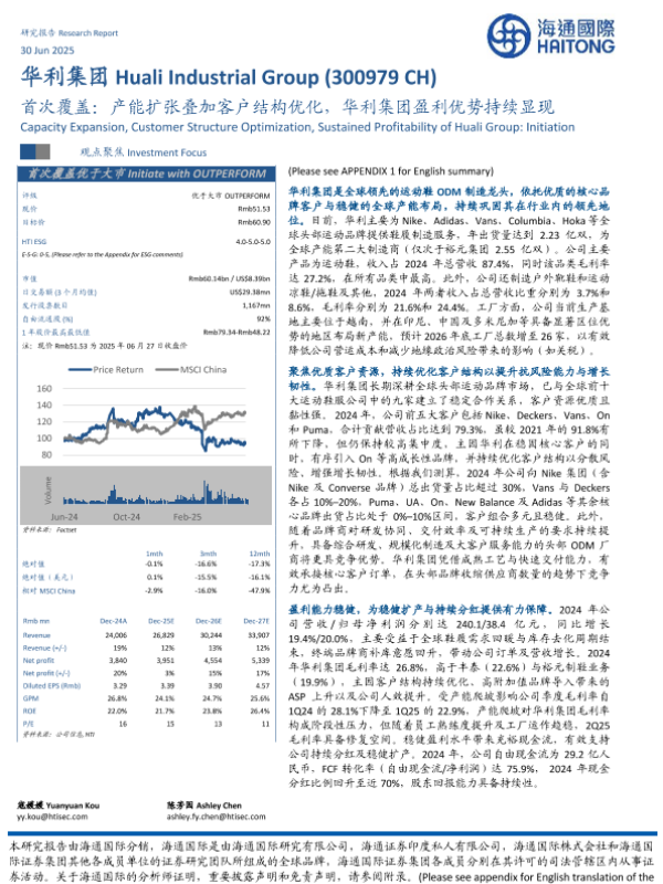 【海通国际】【20250630】华利集团(300979)首次覆盖:产能扩张叠加客户结构优化,华利集团盈利优势持续显现-40页