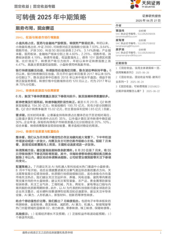 【天风证券】【20250627】可转债2025年中期策略:顺势布局,掘金赛道-20页