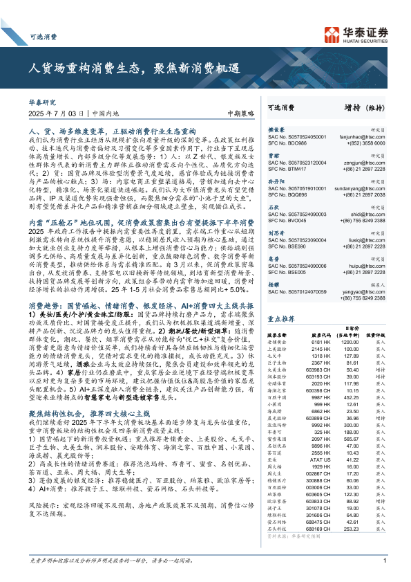 【华泰证券】【20250703】可选消费行业中期策略:人货场重构消费生态,聚焦新消费机遇-60页