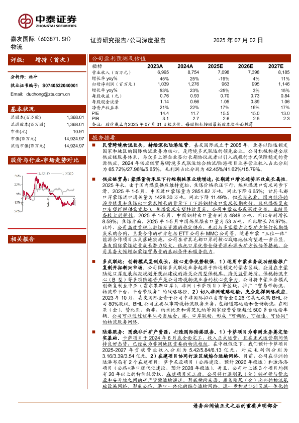 【中泰证券】【20250702】嘉友国际(603871)民营跨境物流领先者,经营模式复制续成长-21页