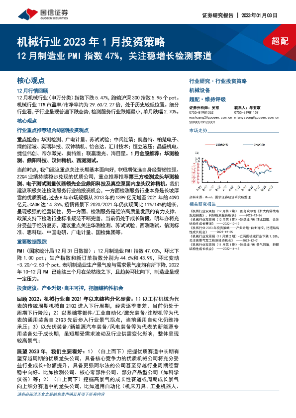 【国信证券】【20230103】机械行业2023年1月投资策略:12月制造业PMI指数47%,关注稳增长检测赛道-25页